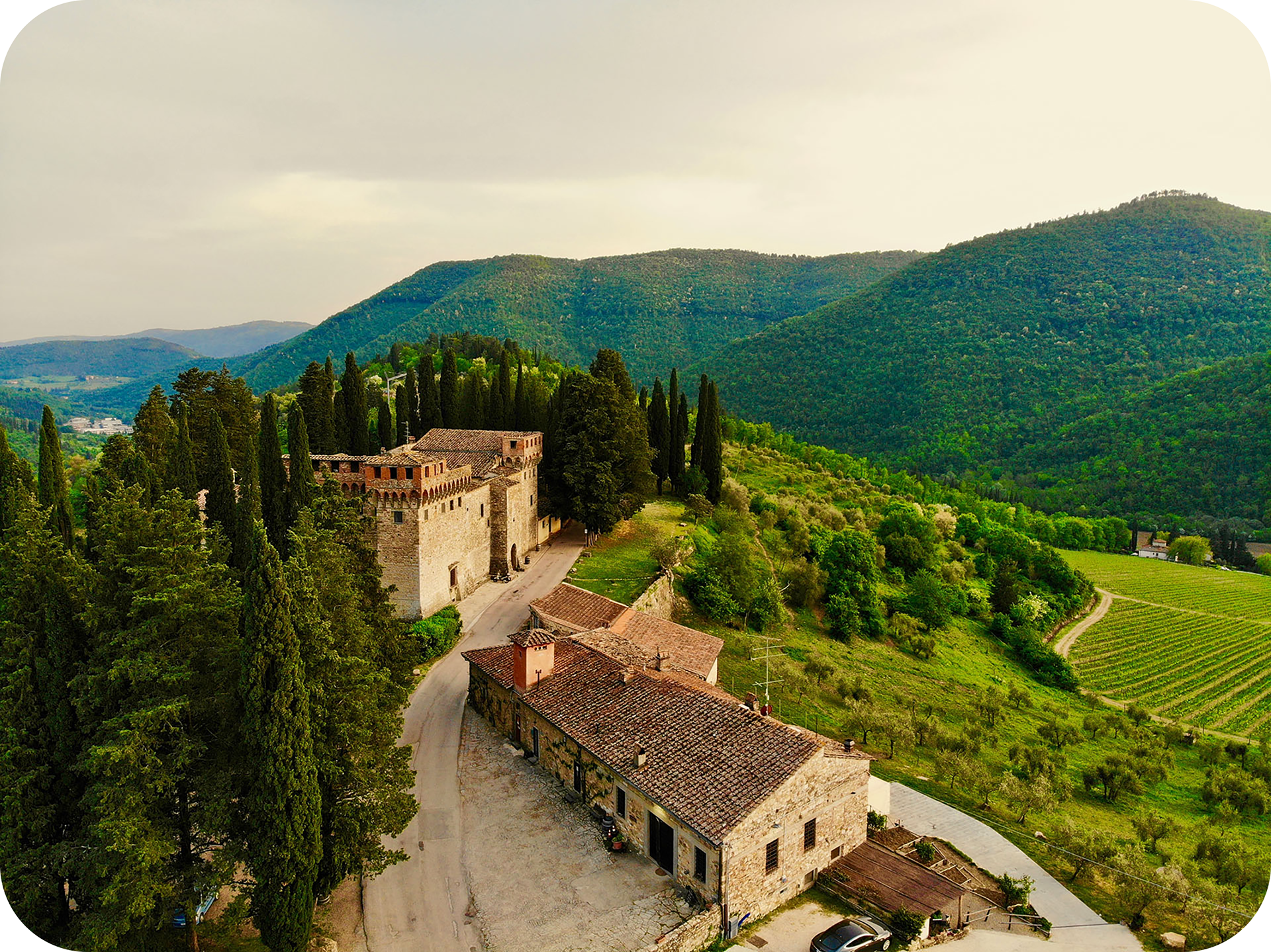 Skjult blant de grønne åsene i Chianti Rufina ligger Castello del Trebbio – et middelalderslott bygget i 1184 og tidligere hjem til den mektige Pazzi-familien, som bidro til renessansens intriger.